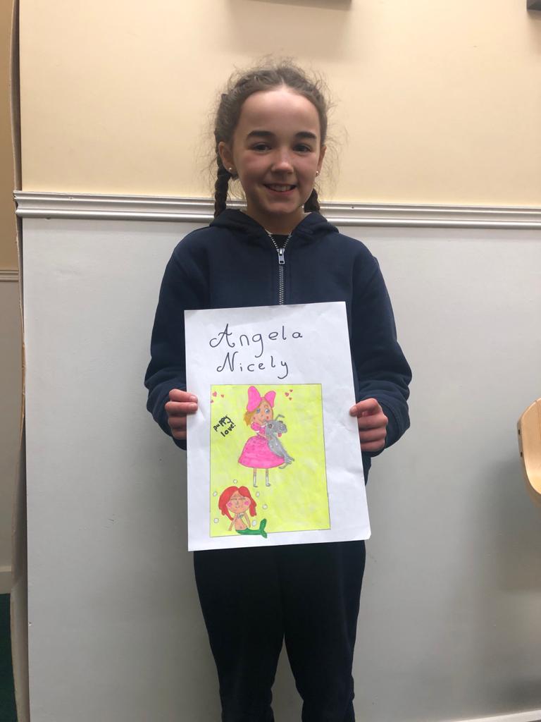 The judges of the art competition were very impressed with Ella's interpretation of Angela Nicely Puppy Love. They also mentioned how they loved the colours which Ella used along with the addition of their avatar Pearl.